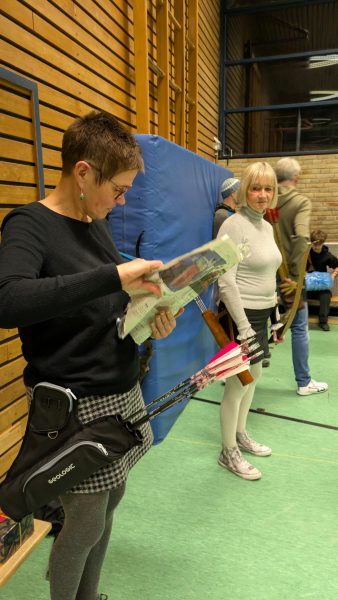 Schrottwichtel-Schießen zum Jahresabschluss: 14 Bogenschützinnen und Bogenschützen gingen am 17. Dezember in der Sporthalle der Wilhelm-Busch-Schule an den Start. Außer Pfeil und Bogen hatten alle einen besonders ungeliebten, geschmack- oder nutzlosen Gegenstand als Geschenk mitgebracht. Einige der Präsente waren liebevoll eingepackt, andere eher dem Inhalt entsprechend. Zunächst wurden alle Geschenke mit einer Nummer versehen.