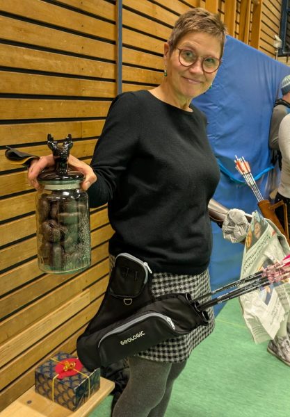 Die Regel lautete: Falls niemand trifft, wird die Schrottwichtel-Zielscheibe immer näher an die Grundabschusslinie gerückt. Jeder hatte also die Chance zu treffen. Insgesamt durften alle Teilnehmerinnen und Teilnehmer so oft schießen, bis sie ein nummeriertes „Säckchen“ getroffen hatten. Wer erfolgreich war, durfte das „Säckchen“ abnehmen, die Nummer bei den Schrottwichtelgeschenken suchen, auspacken und sich freuen. Nach mehreren Runden waren schließlich alle „Säckchen“ getroffen und die Geschenke verteilt.